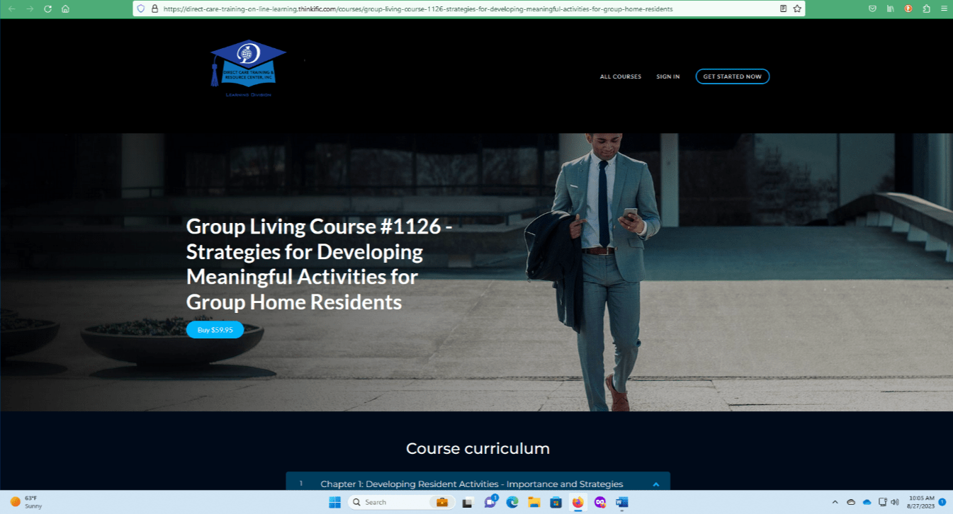 Visit and take the class at: https://direct-care-training-on-line-learning.thinkific.com/courses/group-living-course-1126-strategies-for-developing-meaningful-activities-for-group-home-residents